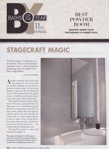 Robert Flock received his Masters in Architecture from UCLA in 1980 receiving the American Institute of Architects Gold Medal Award for excellence. He has worked with renowned architects Charles Moore, Barton Myers, Frank Israel, Craig Hodgetts, and Mark Mack in Los Angeles and with Rob Quigley in San Diego. Robert has been a licensed architect (License Number C15600) in California since 1985 and NCARB (National Council of Architectural Registration Boards) certified since 1995 - certificate number 46910.